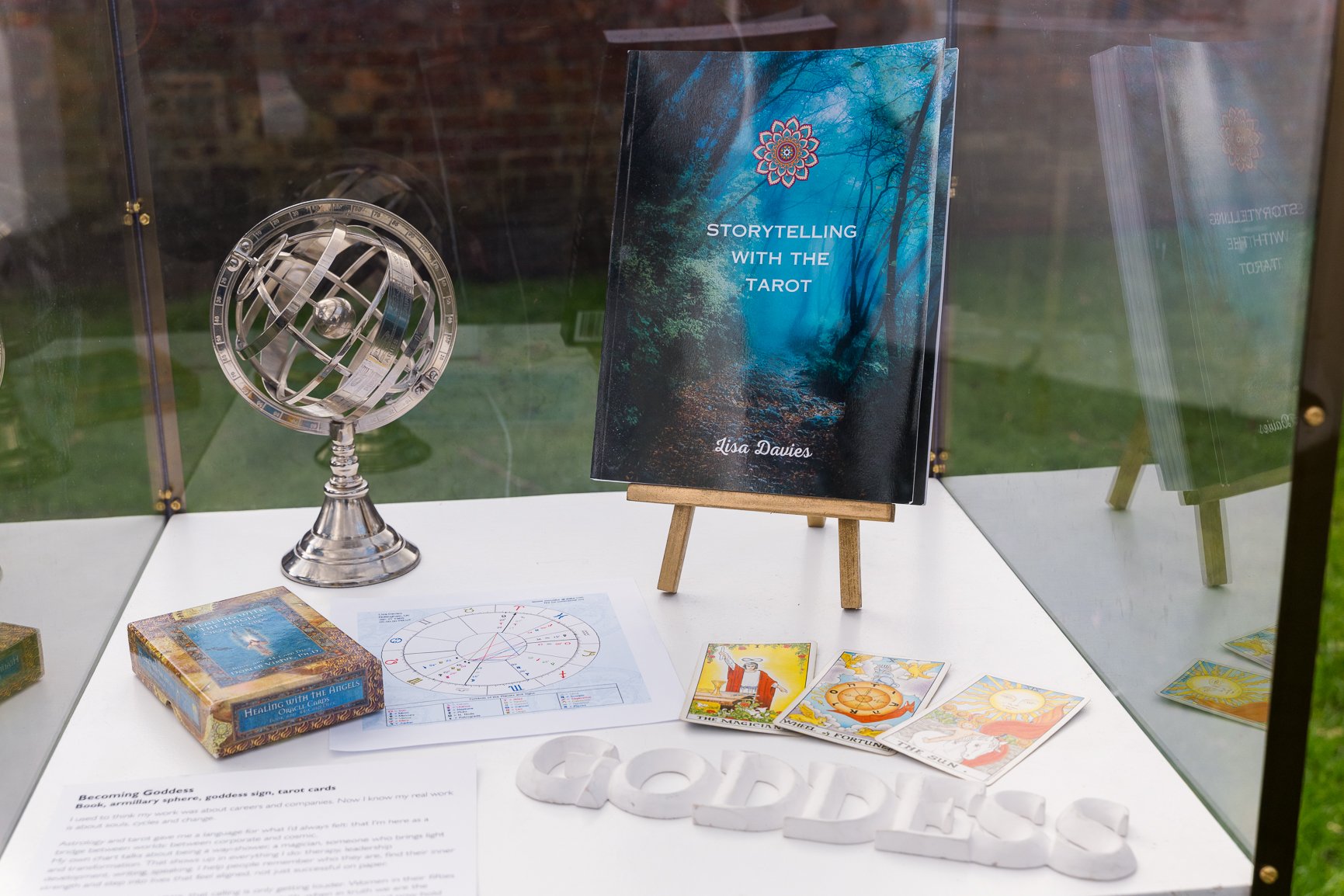 Book, armillary sphere, goddess sign, tarot cards